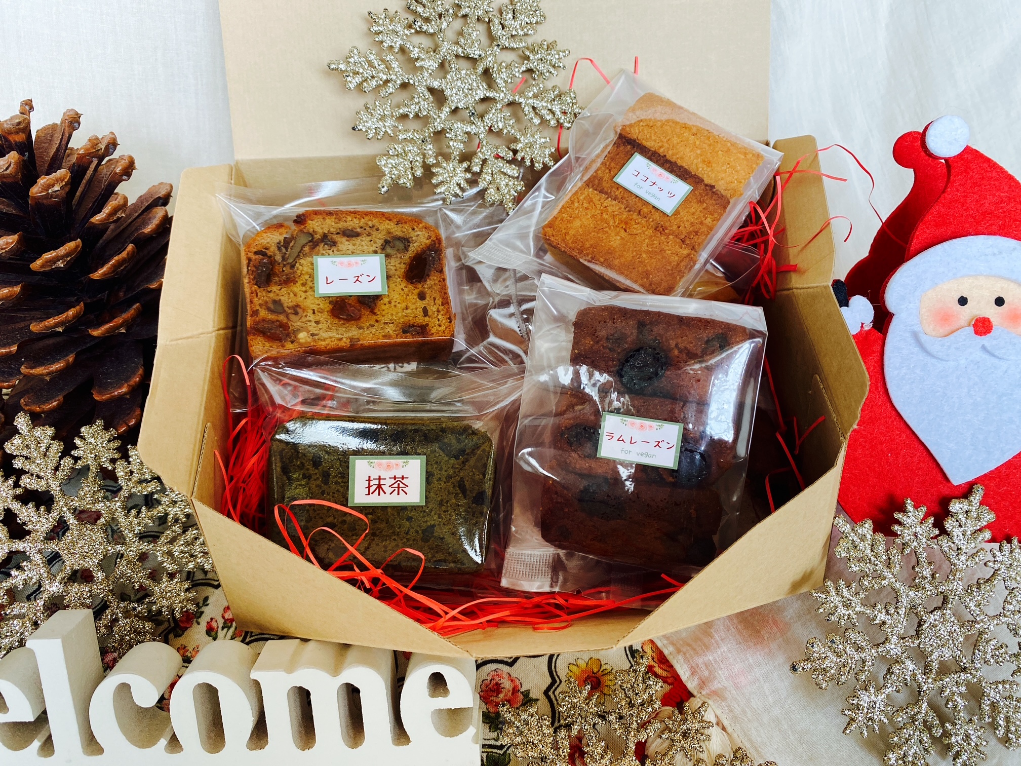 漬け込みフルーツといちじくを7個ずつ / ココナッツとココアを7個ずつ / ナッツとシナモンとそば粉とレーズンを7個ずつ / または7種類を2個ずつの14個セットなどなど...。想像するだけで楽しくなりますね♪カスタムも承ります。お好みに合わせてどうぞ♪また、熨斗またはリボンを無料で対応いたします。ご要望のある場合はお申し付けください。